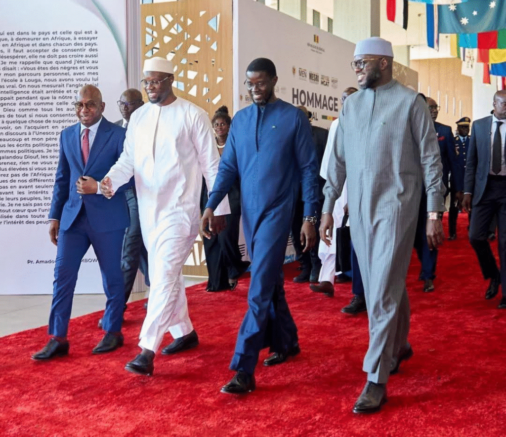 Lors de la cérémonie d’hommage national à Ahmadou Makhtar Mbow, Diomaye Faye et Ousmane Sonko se sont montrés très complices et souriant, accompagnés de El Malick Ndiaye, président de l’Assemblée nationale, et de Moustapha Guirassy, ministre de l’Education.