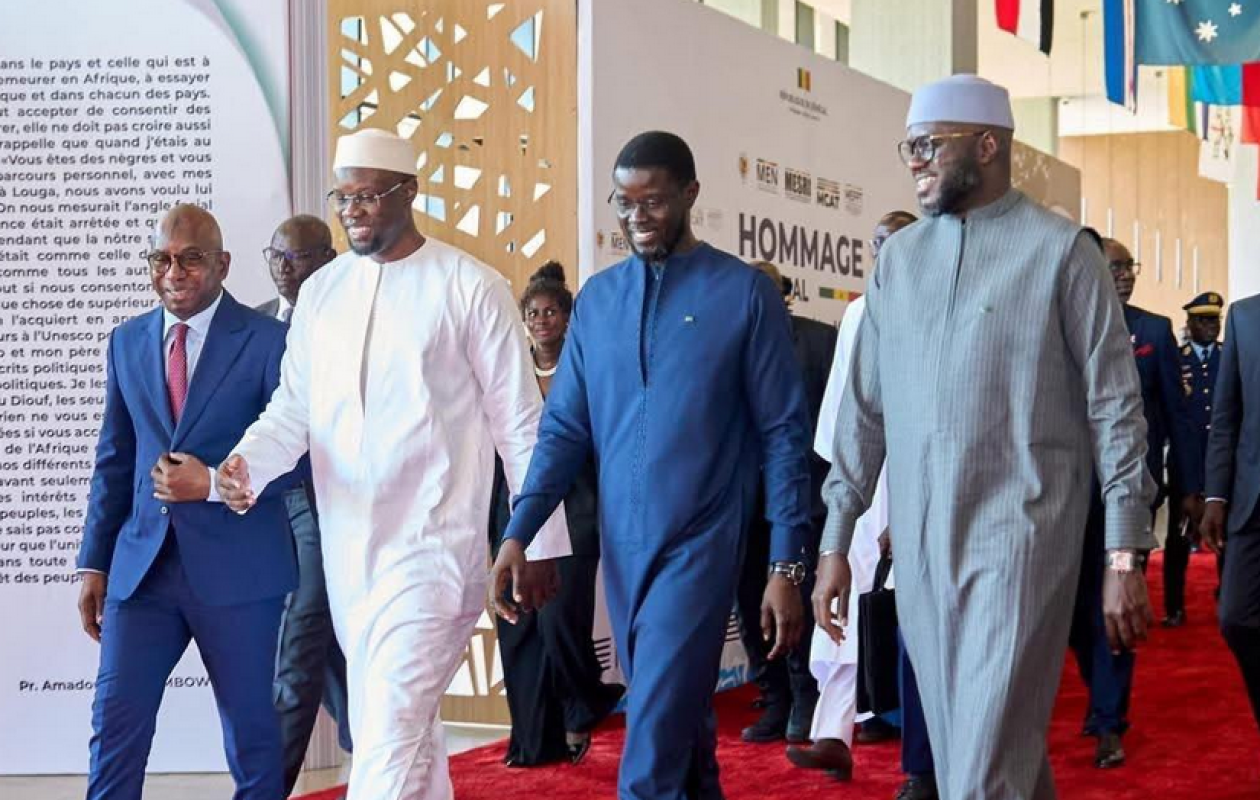 Lors de la cérémonie d’hommage national à Ahmadou Makhtar Mbow, Diomaye Faye et Ousmane Sonko se sont montrés très complices et souriant, accompagnés de El Malick Ndiaye, président de l’Assemblée nationale, et de Moustapha Guirassy, ministre de l’Education.