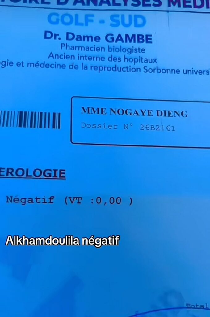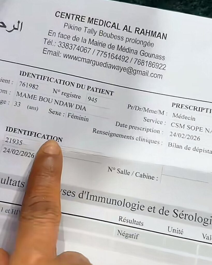Dans la même veine, la tiktokeuse Nogaye Kara, amie proche de la commerçante et des employés arrêtés, a levé le doute : les résultats de son test sont également négatifs. Il en est de même pour Adji Mass, très proche de ce cercle d’amis. La jet-setteuse Rangou avait, elle aussi, dévoilé son test négatif au lendemain de la divulgation de la séropositivité de l’animateur Pape Cheikh Diallo et consorts.